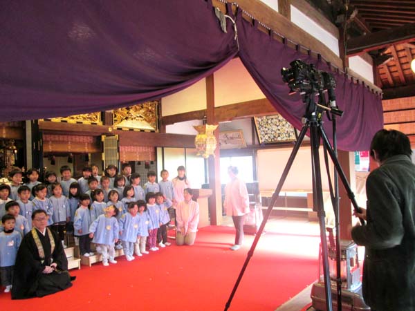 今日はお寺の本堂で卒園写真を撮りました。