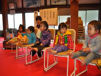 今日はわいわい冬祭りの「かるた大会」です。幼児さんは応援中!