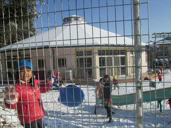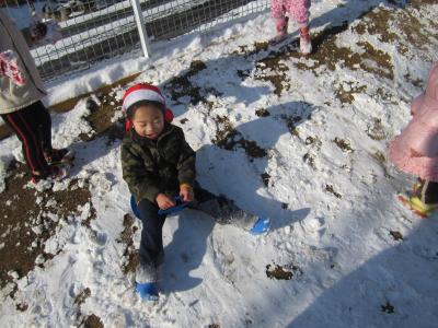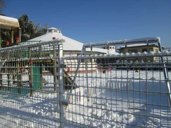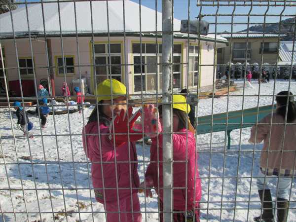 子供たちは雪が積もって大喜び。園庭で走り回ってます。