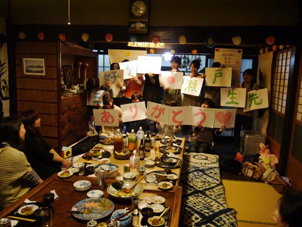 みんなで思い出を送るためにサプライズの催し物に二人とも感動、感激、そして涙、涙・・・。