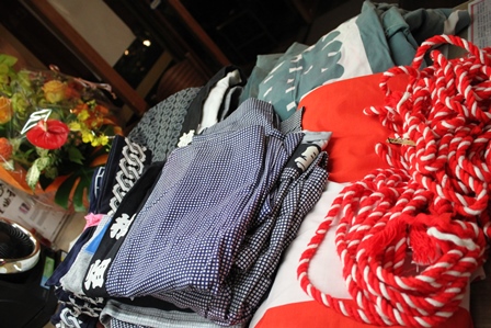 紅白の垂れ幕、ハッピ、帯、合計71点。