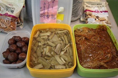 お蕎麦とおうどんと薬膳カレーに栗の渋皮煮とずいきの煮物・・・・。