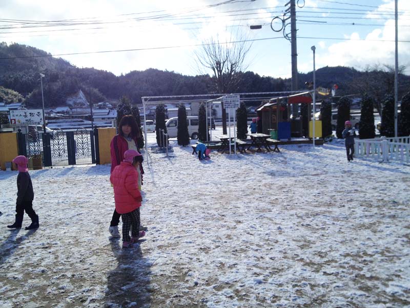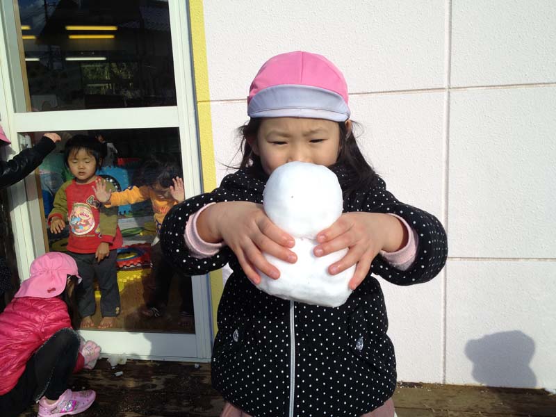 今日は朝から雪、子どもたちはキャッキャ喜んで遊んでいました。