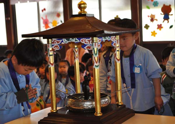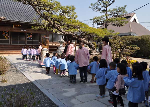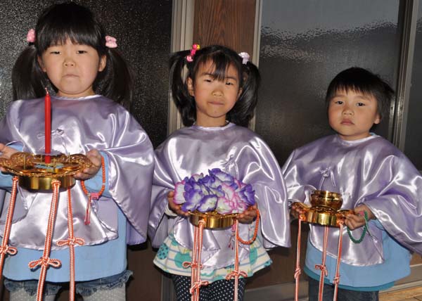 お互い仲良く助け合うことを約束し甘茶かけをしました。