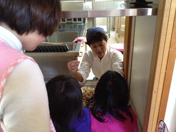 給食の生塩先生と「どうやって食べようか」と相談中、明日が楽しみです。