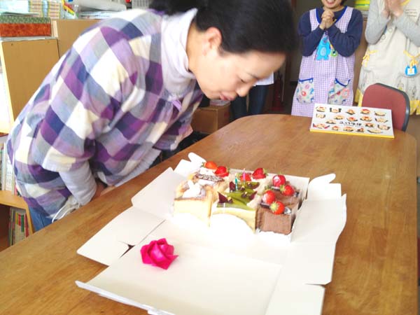 きょうは坊守の誕生日でしたので、保育園のみんなと家族とで