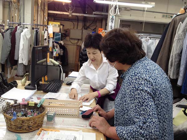パートの三浦さんへカルテ作成を教えている松山さん。