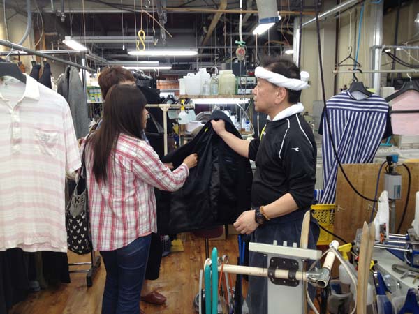 見学に来られた方に洗いの説明をしている住職