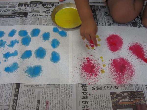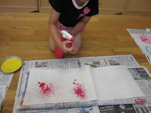 きいぐみは半紙に霧吹きで花火を作りました。