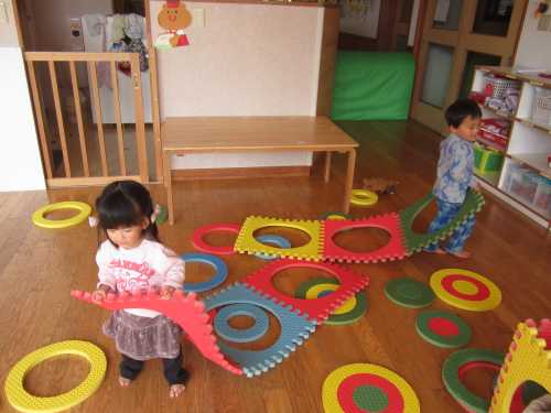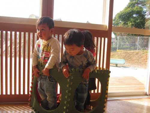 今日はみんなで仲良く大型パズルであそびました。