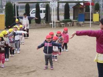 今日は、幼児さんと一緒にラジオ体操に参加しました。