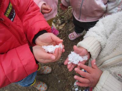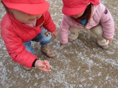 あか1くみさんも、園庭に出て実際に雪をさわってみました。