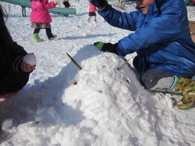 志和は昨日からしんしんと雪が降り積もり、園庭は真っ白!