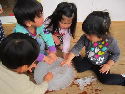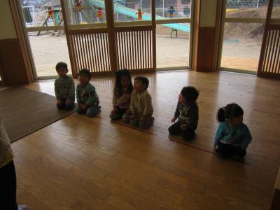 きちんと正座をして保育士の話を聞けるよう練習しています。