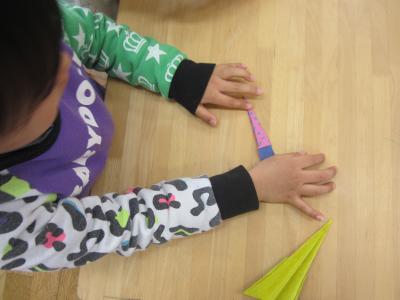 今日は、折り紙を使って紙飛行機を作りました!