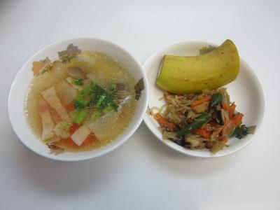 五目きんぴら、かぶとベーコンのスープ、バナナでした(^^)/