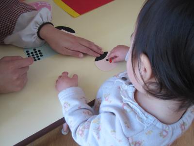顔の配置やシール貼りがとても上手になり、とってもかわいいひな飾りができました(^^)