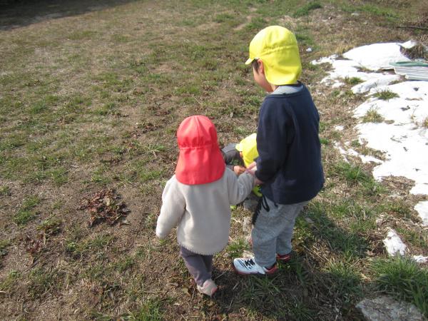 やさしく手をつないでもらい、一緒に草花を探しました。