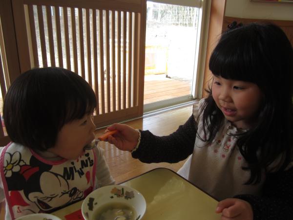 お兄さん、お姉さんがやさしく声をかけてくれたり、食べさせてくれるなど、