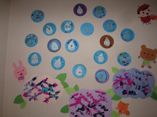 昨日みんなで作ったアジサイも雨が降って喜んでいます。