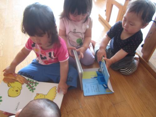 それぞれがお気に入りの絵本をもってきて、集中して見ます。