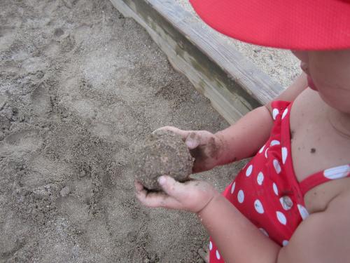 保育者と作った泥だんごを大事そうに手にのせる、可愛い姿がありました。