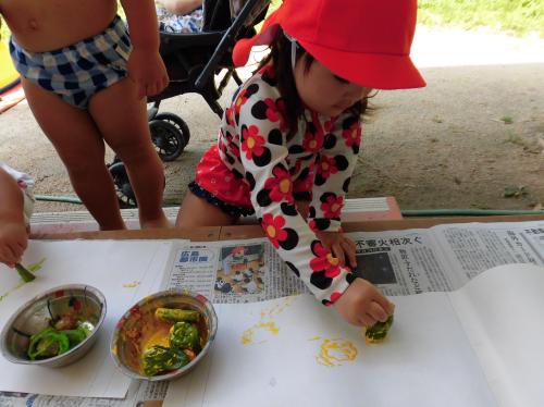 今日は野菜スタンプをしました。