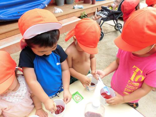 約束事を守り、色んな色を混ぜたり・お店やさんごっこを楽しんでいました(*^^*)