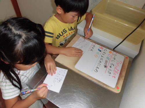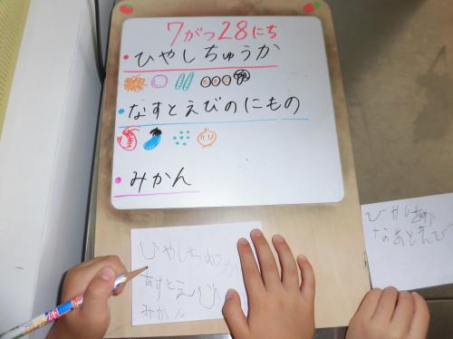 メニュー表に書いてある文字を、真剣に書く子どもたち。