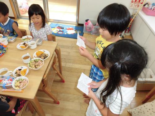 お当番さんには給食のメニューを書いて発表してもらいます!