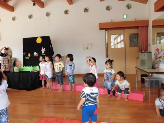 お月見の行事について話を聞いたり、ペープサートをみたりしました。