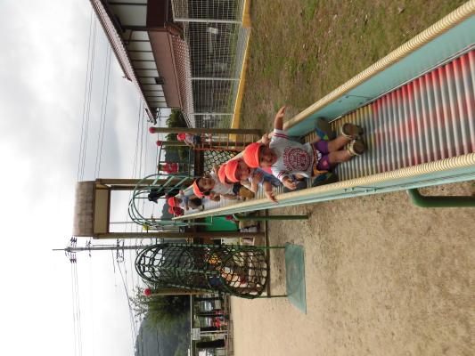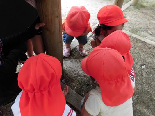 みんなですべり台を滑ったり、虫の家を見てみたりと