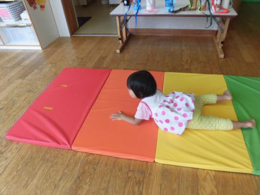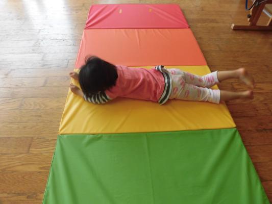 マットではスーパーマンのように手足を伸ばして転がったり、