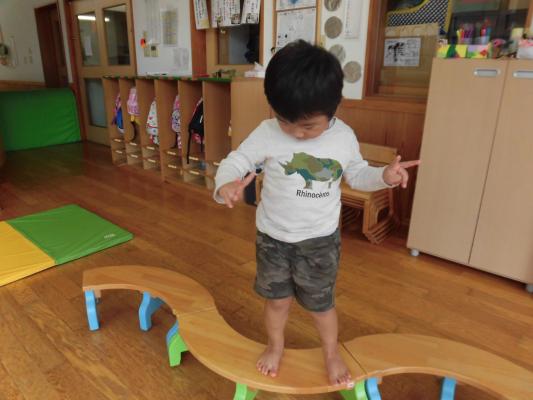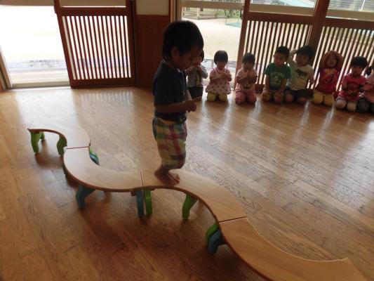 平均台では忍者になって落ちないようにそーっと歩いたり、