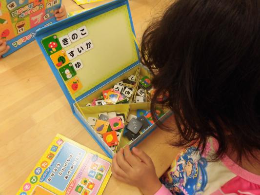 そこで今日は、マグネットボックスを使って言葉遊びをしました!