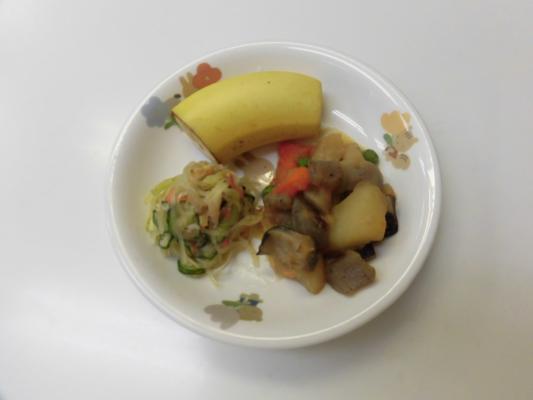 今日の給食はがめ煮、せとうちさっぱりサラダ、バナナです。
