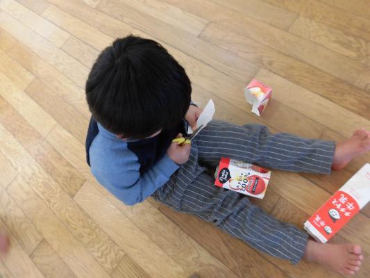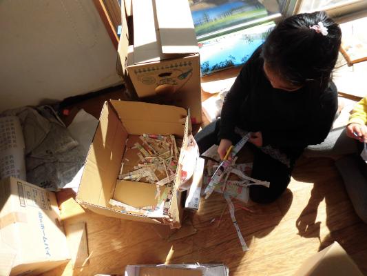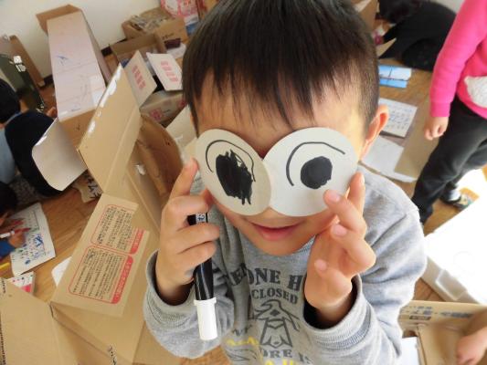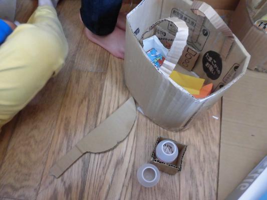 ダンボール、牛乳パックなど、さまざまな廃材を自由に使って
