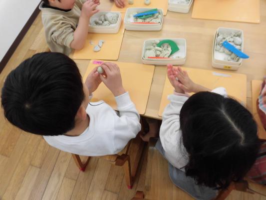 お兄さん、お姉さんの粘土道具を貸してもらいながら