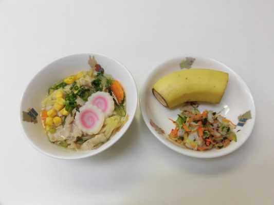 中華そばには豚肉、にんじん、玉ねぎ、とうもろこし、なると、ねぎが入っています。