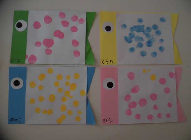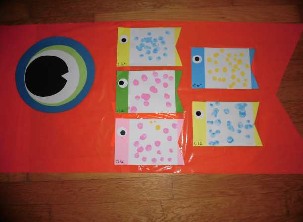 「トントン♪」とスタンプをしながらこいのぼりの模様をつくり、