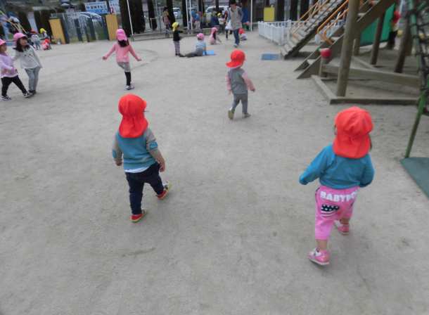 「ぴっぴ」と言いながら友だちと走って行っていました。