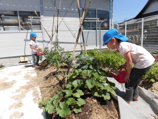 そしてクラスで育てている野菜たちの水やり当番も忘れず頑張っています!!