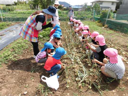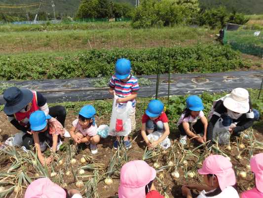 今日は野村さん宅の畑にて年長・年中クラスで玉ねぎ堀りをさせていただきました。