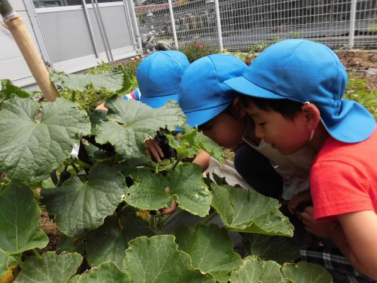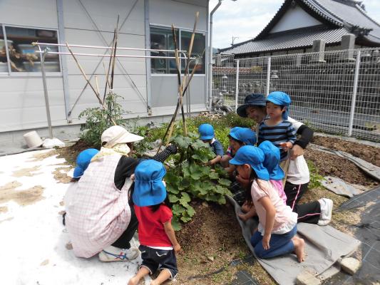 先日、当番さんが水やりをしていると「あ!きゅうり大きくなった!!」と発見してくれました(^^)