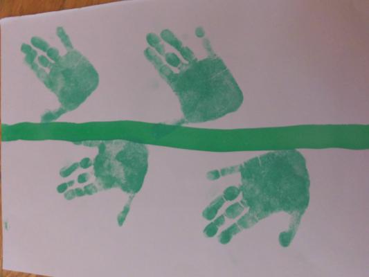 手形で葉っぱを表現しました。