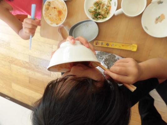 など子ども同士でもマナーを伝え合って確認しながら楽しく食べています。