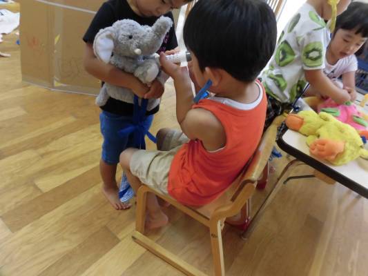 かぞくごっこ、せんせいごっこ、中でも人気なのがお医者さんごっこです(o^―^o)
