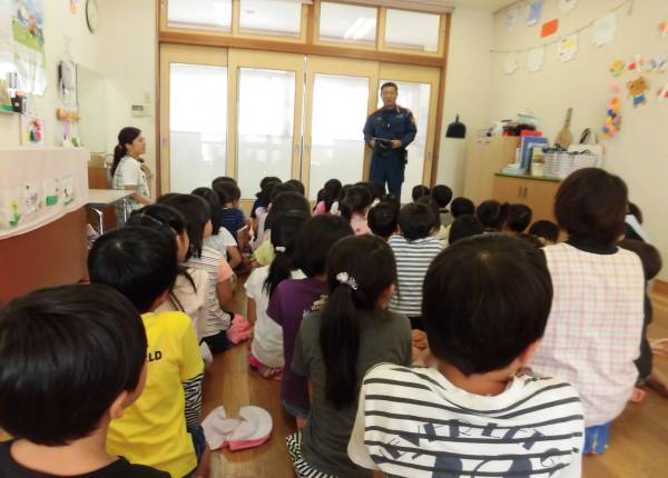 今日は消防の方が来園されての避難訓練でした。