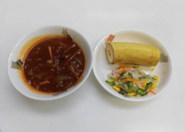 ハヤシライスには牛肉、たまねぎ、にんじん、しめじ、グリンピースが入っています。