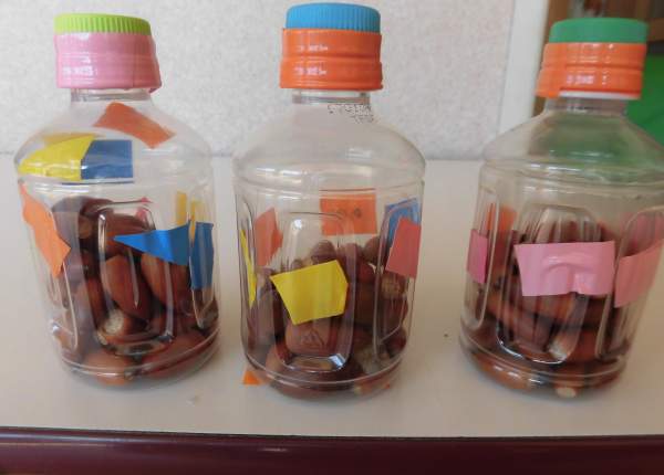 そのペットボトルにはシールを貼って飾りつけをしました。